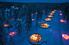 Saariselkä är en populär turistort – speciellt hotellet ovan där du kan bo i en igloo. Förutom norrskenet kan du uppleva midnattssolen under kvällen. Under dagarna kan du åka hundspann, vandra med renar eller njuta av värmen från bastun.