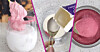 1. Vispa 1 tsk pulver med 4 tsk vispgrädde tills det blir ett rosa fluff.