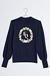 Stickad tröja med mönster och brodyr, här kan du läsa mer.