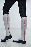 Grå ridstrumpa med röda detaljer, här kan du läsa mer.