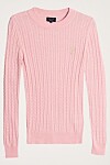 Rosa ribbad tröja med guldigt tryck, här kan du läsa mer.