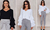 3. Beige topp med volanger på armarna.