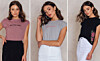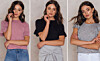 1. Rosa topp med knytning i midjan.