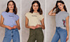 3. Grå t-shirt med broderade rosor.